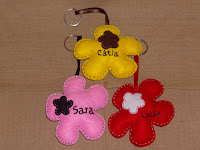 Porta-chaves de feltro em várias formas(coração,estrela e flor) com nomes.À escolha.